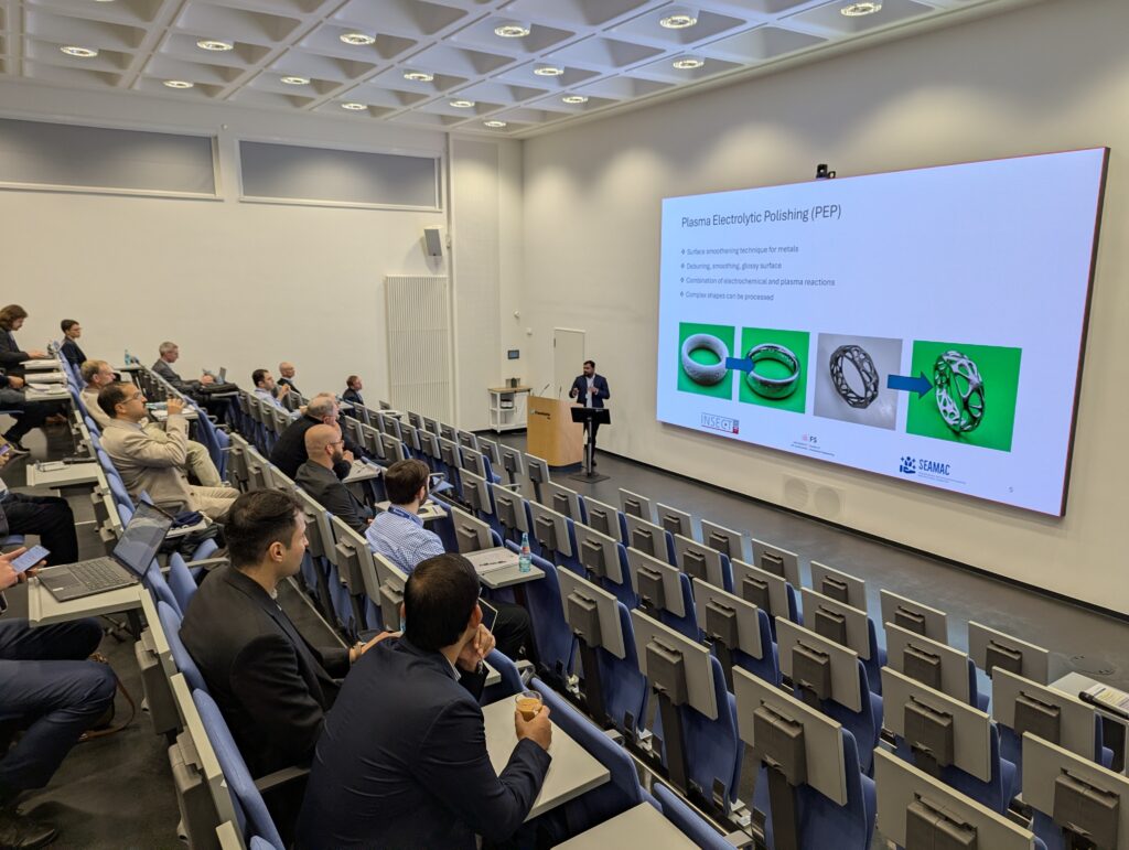 SEAMAC participated at the 21st International Symposium on Electrochemical Machining Technology (INSECT), held in Chemnitz on 3–4 November 2025. Joško Valentinčič chaired a session on plasma electrolytic polishing, and Jithinraj Edaklavan Koroth presented the paper “Influence of Electrolyte Flow on Plasma Electrolytic Polishing of Additively Manufactured Lattice Structures”, authored by Jithinraj Edaklavan Koroth, Maxime Debard, and Joško Valentinčič.